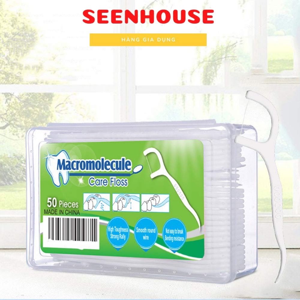 Hộp 50 Chiếc Tăm Chỉ Nha Khoa Macromolecule Tiệt Trùng Sợi Chỉ Mảnh Xanh Lá free ship