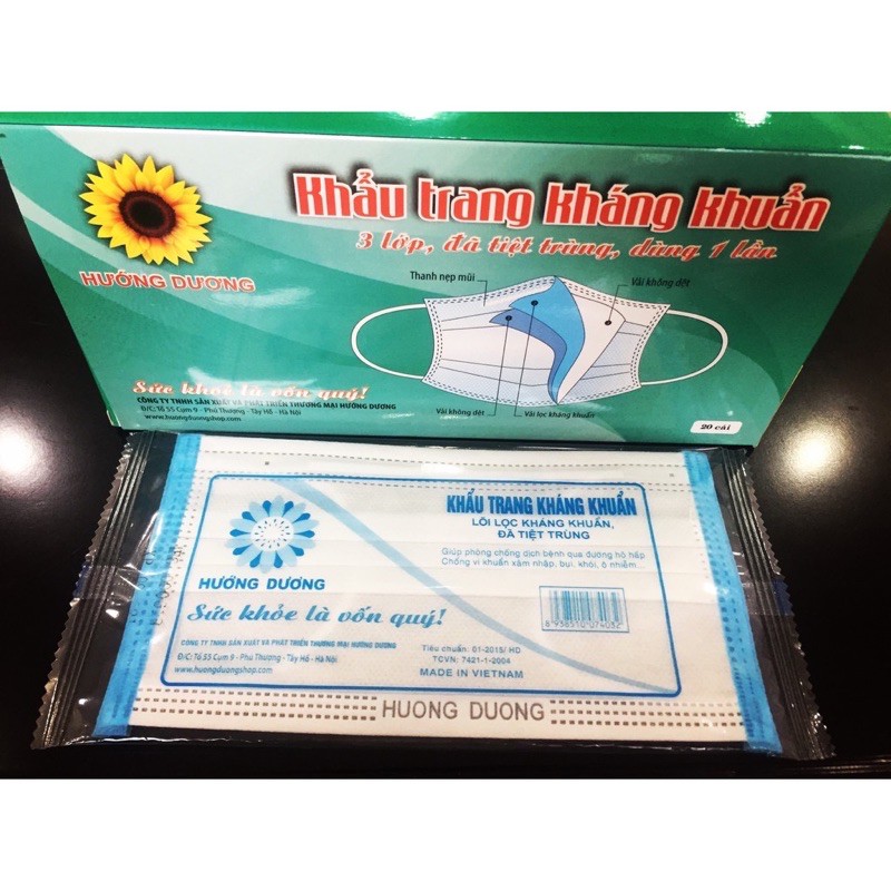 Khẩu Trang Y Tế Hướng Dương Tiệt Trùng Từng Cái( Hộp 20 cái ) free ship